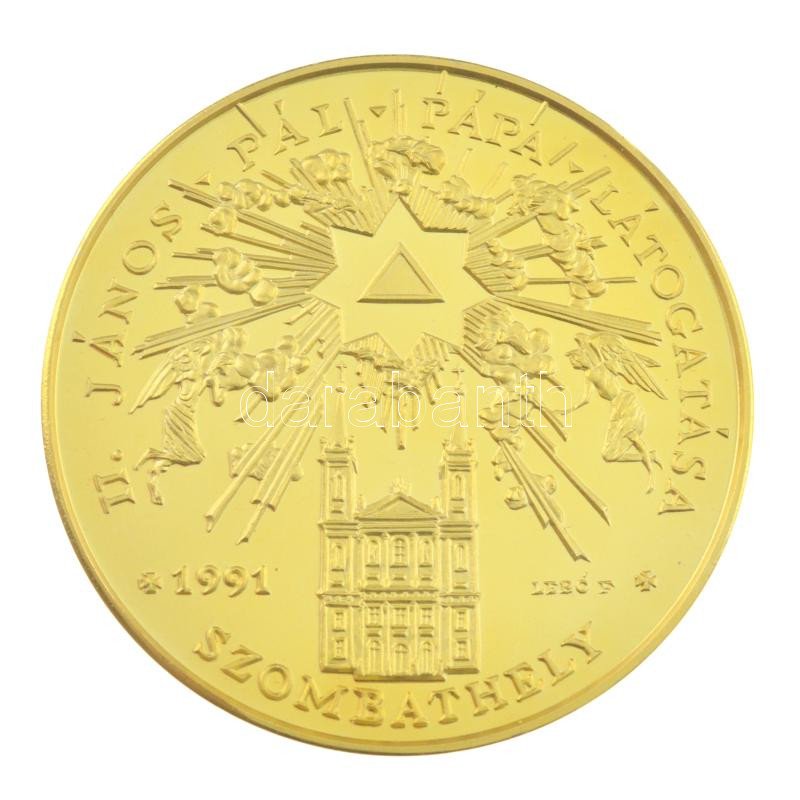 Bognár György (1944-) / Lebó Ferenc (1960-) 1991. "II. János Pál pápa látogatása - Szombathely" kétoldalas aranyozott fém emlékérem (42,5mm) T:PP fo.