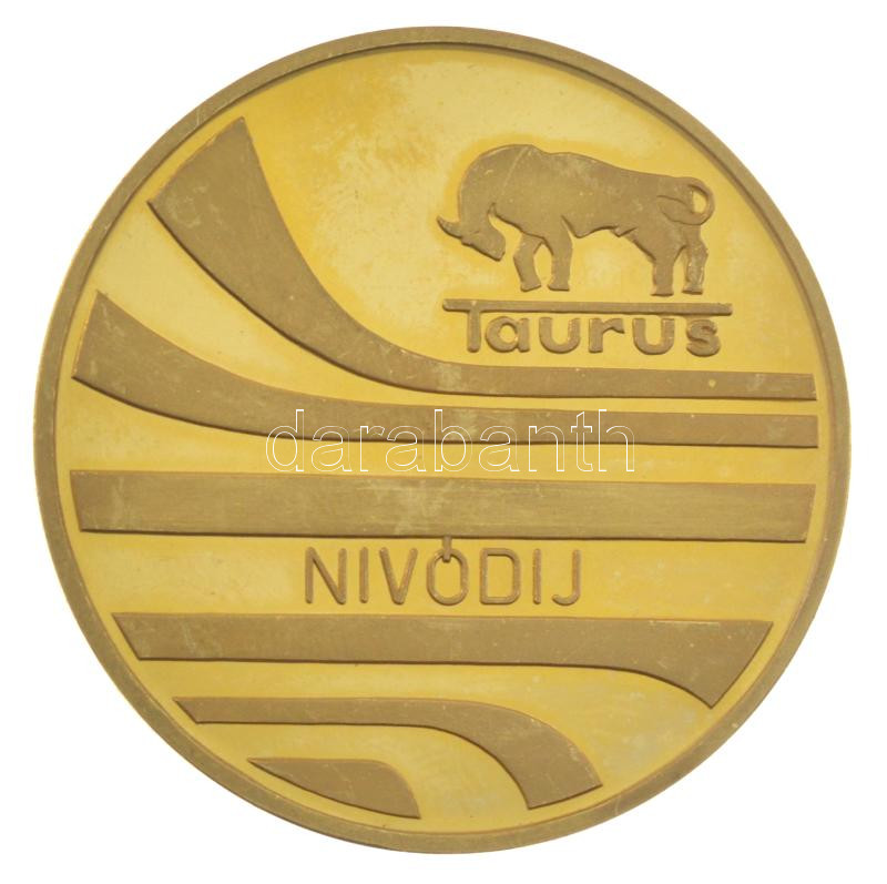 DN "Taurus Nívódíj" kétoldalas, aranyozott érdemérem (42,5mm...