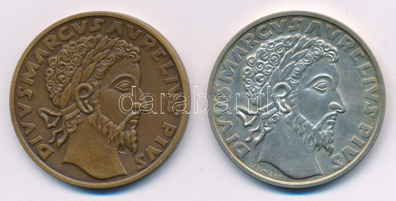 Description: Szolláth György (1927-) / Vadász György (1924-1997) 1982. "MÉE XII. Vándorgyűlése - Szombathely / Marcus Aurelius" Ag emlékérem (34,90g/0.640/42,5mm) + bronz emlékérem (42,5mm) T:UNC,AU