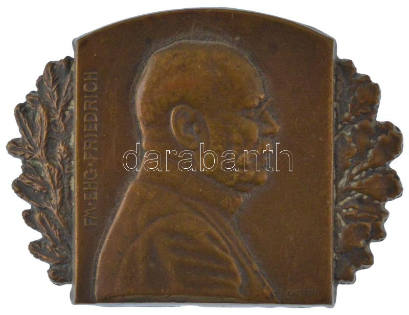 Description: Osztrák-Magyar Monarchia 1915. "FM. EHG. FRIEDRICH (Frigyes Főherceg Tábornagy)" bronz sapkajelvény. Szign.:R. Marschall (32x43mm) T:AU kis karc /