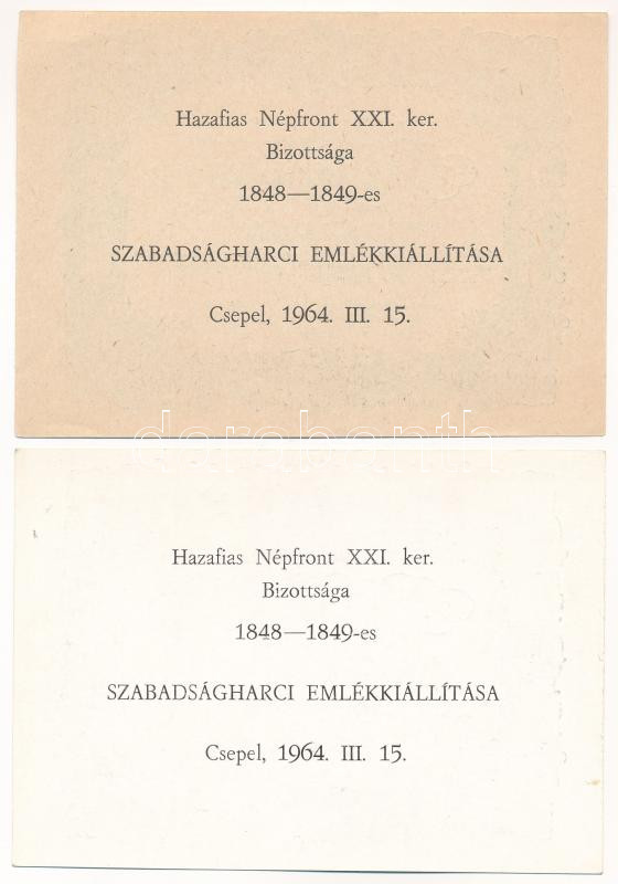 1849. 10Ft "Kincstári utalvány" imitációja, hátoldalán "Hazafias Népfront XXI. ker. Bizottsága 1848-1849-es Szabadságharci Emlékkiállítása Csepel 1964. III. 15." (2xklf) T:AU