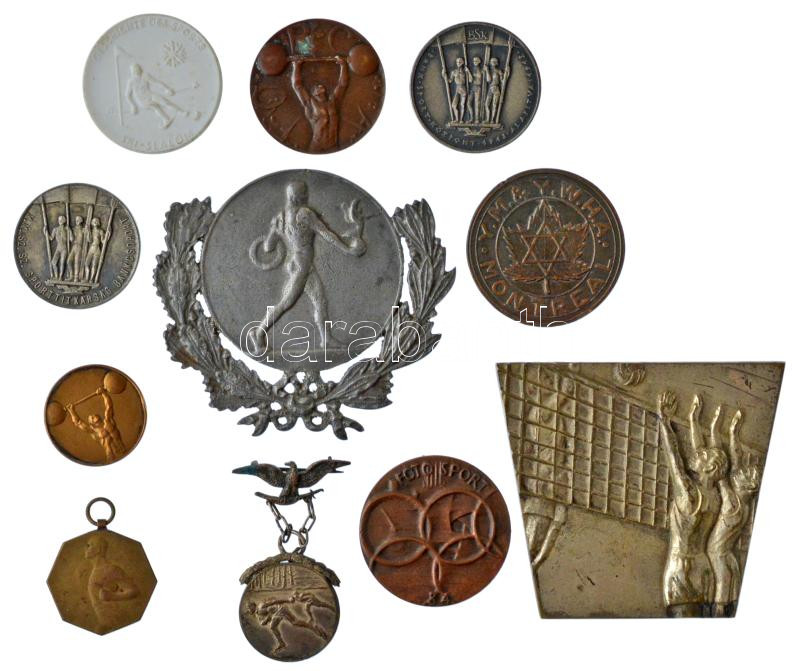 11db-os vegyes sport díjéremtétel, közte 1935. "Budapest 1935 évi súlyemelő bajn. III." kétoldalas bronz díjérem (30mm) T:vegyes
