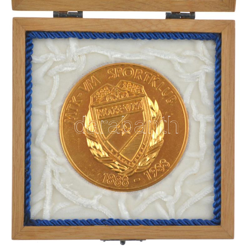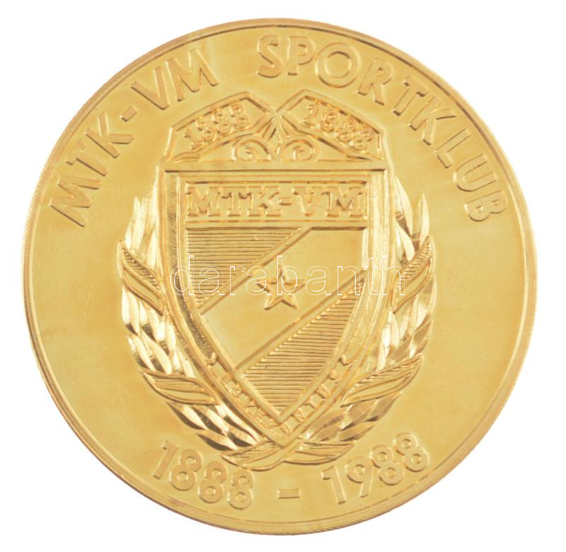 1988. "MTK-VM Sportklub 100 éves" nagyalakú aranyozott fém e... https://www.darabanth.com/en/444-Online-auction/444.0/Numismatics/Sports-awards-and-sports-commemorative-medals~1000011/1988-MTK-VM-Sportklub-100-eves-nagyalaku-aranyozott-fem-emlekerem-disztokban-70mm-TAU-~II2844172