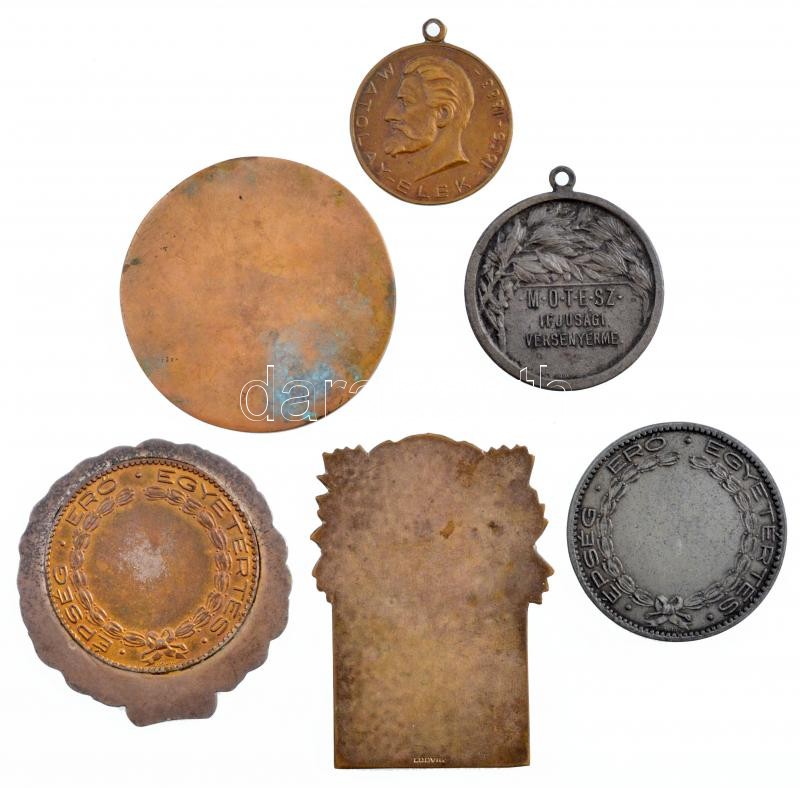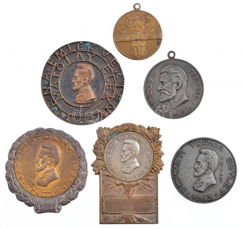 ~1930-1940. 6db Matolay Elek tornász fém emlékplakett (6xklf) T:2 patina