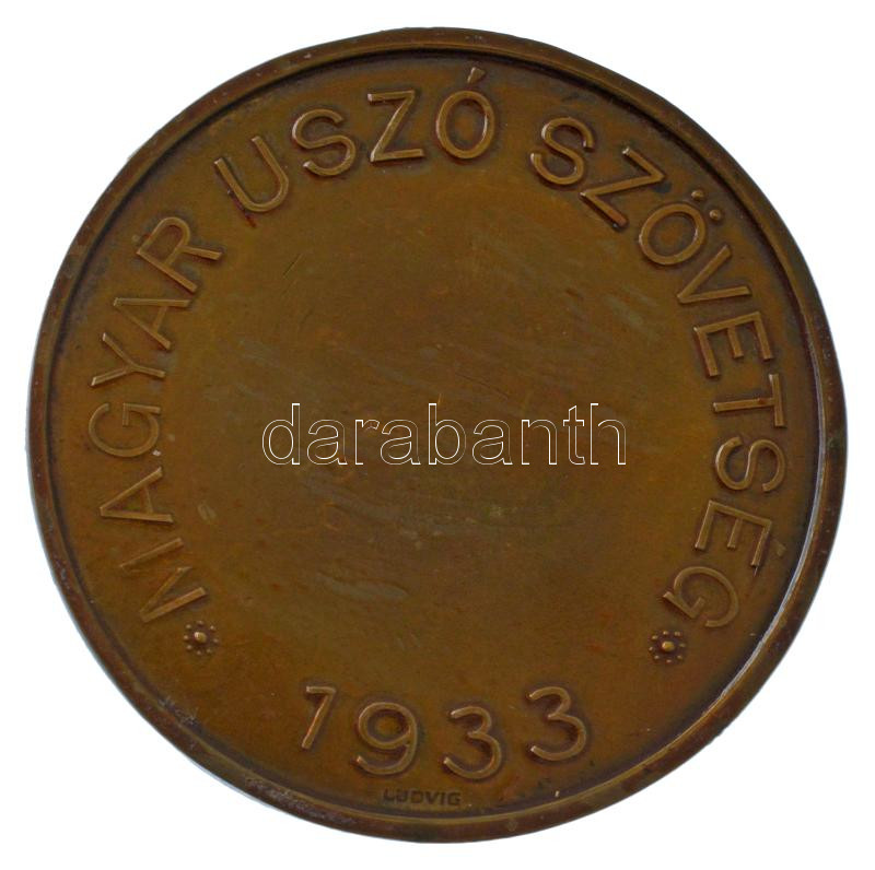 Description: Berán Lajos (1882-1943) 1933. "Gróf Klebelsberg Kunó, a Nemzeti Sportuszoda megteremtője 1930.XII.7. / Magyar Úszó Szövetség 1933" bronz emlékérem, hátoldalán "LUDVIG" gyártói jelzéssel (60mm) T:XF lakkozott