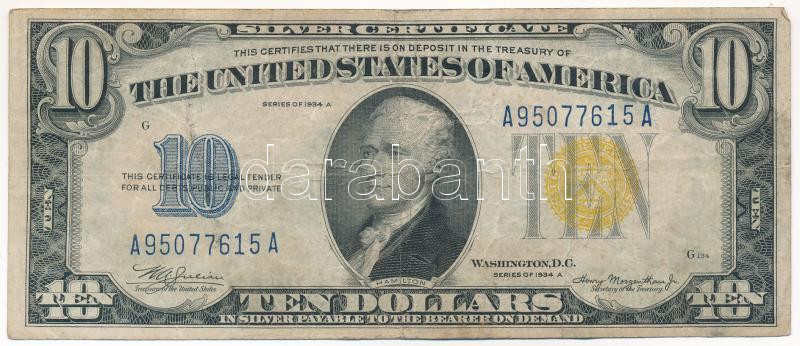 Amerikai Egyesült Államok 1934. 10$ "Silver Certificate - kismére... https://www.darabanth.com/en/444-Online-auction/444.0/Numismatics/Worldwide-banknotes~1000013/Amerikai-Egyesult-Allamok-1934-10USD-Silver-Certificate-kismeretu-sarga-pecset-Eszak-Afrik~II2931314