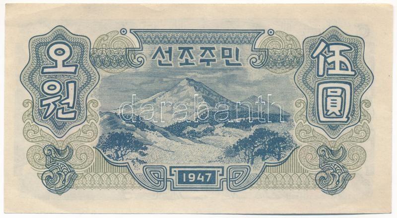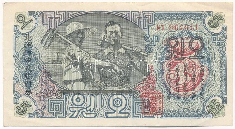 https://www.darabanth.com/en/444-Online-auction/444.0/Numismatics/Worldwide-banknotes~1000013/Eszak-Korea-1947-5W-964041-vizjeles-papiron-TIII-szep-papir-North-Korea-1947-5-Won-96404~II2696041