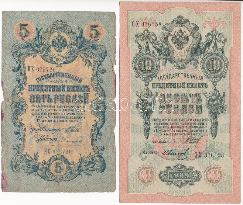https://www.darabanth.com/en/444-Online-auction/444.0/Numismatics/Worldwide-banknotes~1000013/Orosz-Birodalom-1912-1917-1909-5R-plus-10R-Szign-Shipov-TF-szep-papir-VG-Russian-Empire-1912-~II2925881