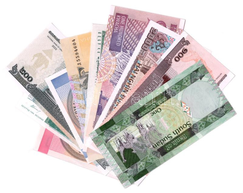 Vegyes 10db-os külföldi bankjegy tétel a világ minden tájáról T:UNC,AU...