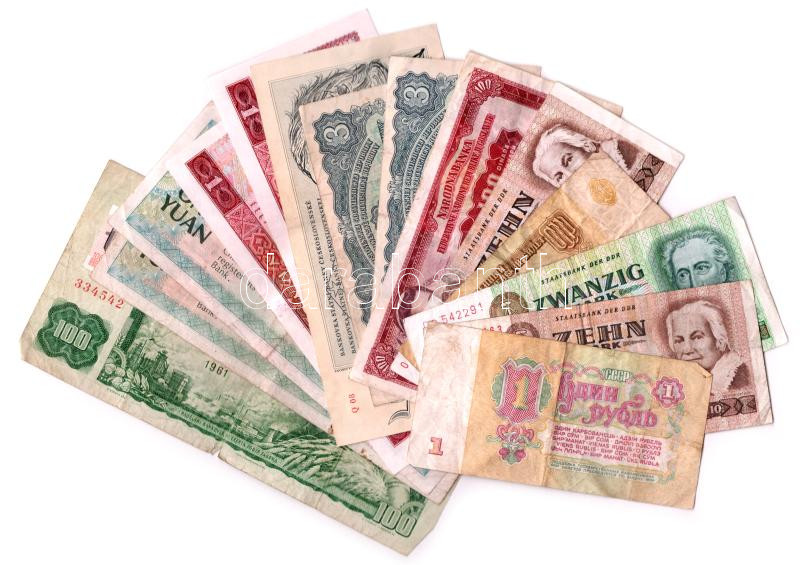 Vegyes 14db-os bankjegy tétel közte érdekesebb darabokkal, közte Csehszlovákia, Jugoszlávia, Kína, NDK T:XF-F