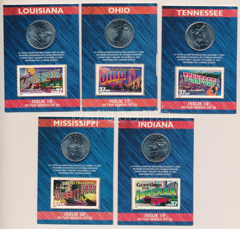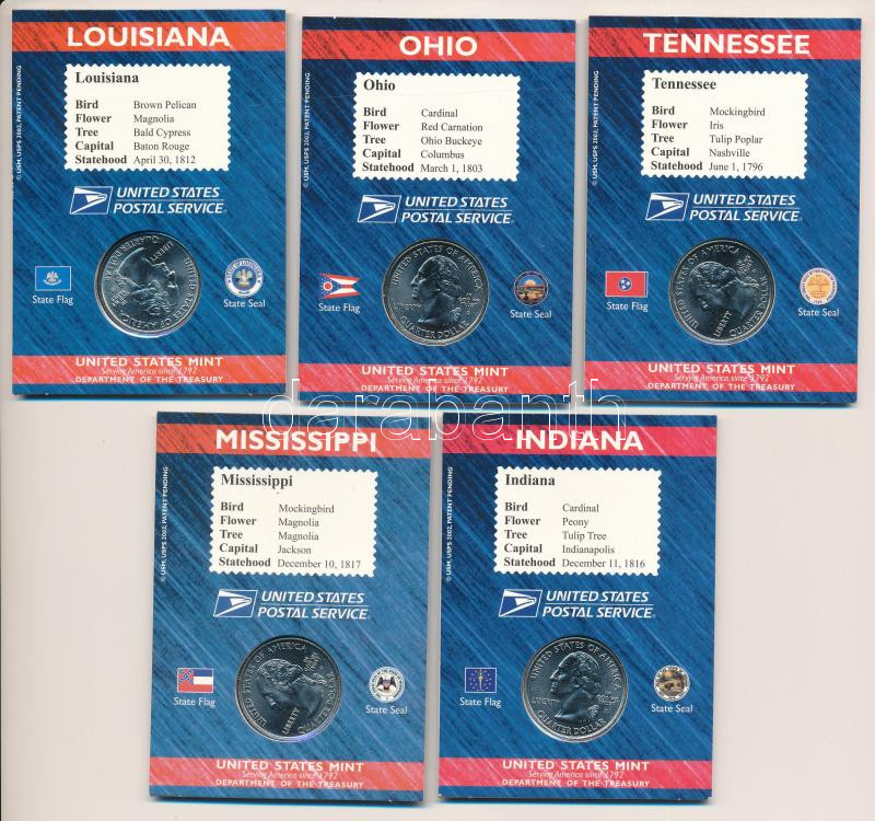 Amerikai Egyesült Államok 2002. 1/4$ Cu-Ni "50 állam" (5xklf... https://www.darabanth.com/en/444-Online-auction/444.0/Numismatics/Worldwide-silver-and-metal-coins~1000014/Amerikai-Egyesult-Allamok-2002-14USD-Cu-Ni-50-allam-5xklf-belyeges-karton-diszlapon-TUNC-~II2858432