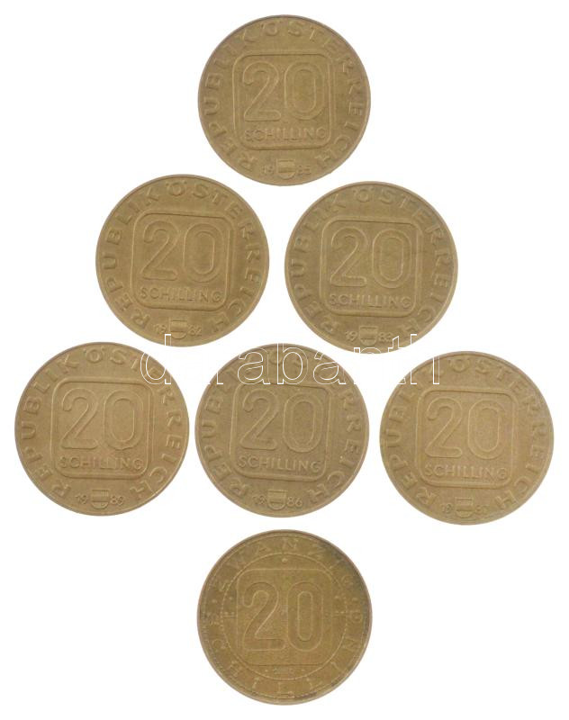 Ausztria 1980-1989. 20Sch Al-bronz (7xklf forgalmi emlékérme) mind kap... https://www.darabanth.com/en/444-Online-auction/444.0/Numismatics/Worldwide-silver-and-metal-coins~1000014/Ausztria-1980-1989-20Sch-Al-bronz-7xklf-forgalmi-emlekerme-mind-kapszulaban-TXF-VF-Austria-19~II2927025