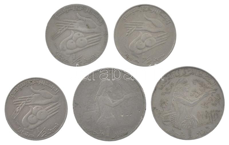 Tunisia 1983. 1/2 Dinar Cu-Ni + 1 Dinar Cu-Ni + 1996. 1/2 Dinar Cu-Ni + 1997. 1/2 Dinar Cu-Ni + 1 Dinar Cu-Ni C:XF-F patina