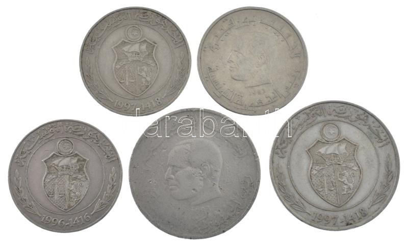 Tunézia 1983. 1/2D Cu-Ni + 1D Cu-Ni + 1996. 1/2D Cu-Ni + 1997. 1/2D Cu-Ni + 1D Cu-Ni T:XF-F patina