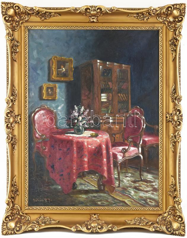 Szatmáry Sz. J. jelzéssel: Enteriőr festményekkel. Olaj, vászon. 80x62 cm. Dekoratív fakeretben. KIZÁRÓLAG SZEMÉLYES ÁTVÉTEL, NEM POSTÁZZUK! / ONLY PERSONAL COLLECTION AT OUR OFFICE!