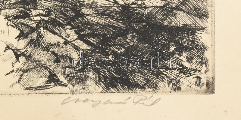 Csergezán Pál (1924-1996): Dusnoki táj. Rézkarc, karton, jelzett, foltos, hullámos, 24,5×29 cm