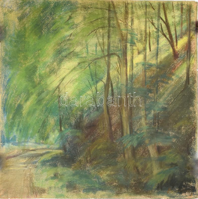 Éber Sándor (1878-1947): Erdei táj. Pasztell, papír, jelzett, sérült, ...
