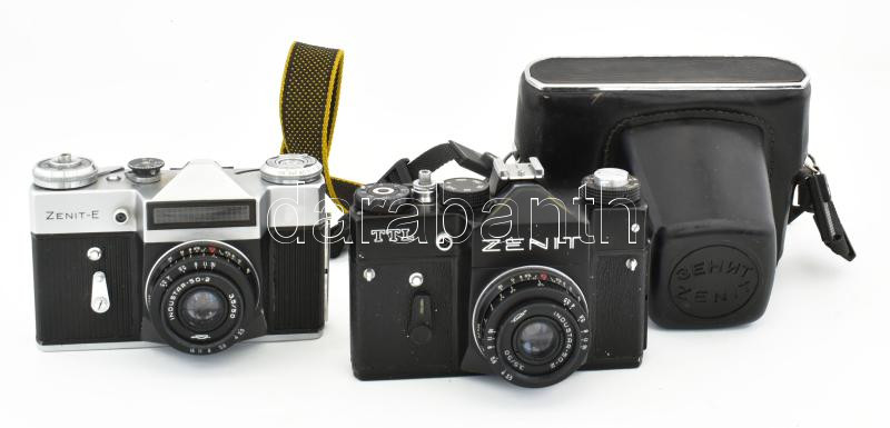 2 db Zenit fényképezőgép: Zenit-E Industar 50-2 3,5/50 objektívvel + Zenit ttl Industar 50-2 3,5/50 objektívvel elem nélkül