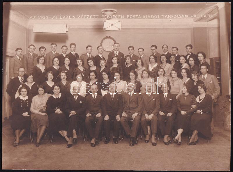 1933 Debrecen, csoportkép a posta kiadói tanfolyam hallgatóiról, vinta... https://www.darabanth.com/en/444-Online-auction/444.0/Photography/Photo~500025/1933-Debrecen-csoportkep-a-posta-kiadoi-tanfolyam-hallgatoirol-vintage-foto-ezust-zselatino~II2925590