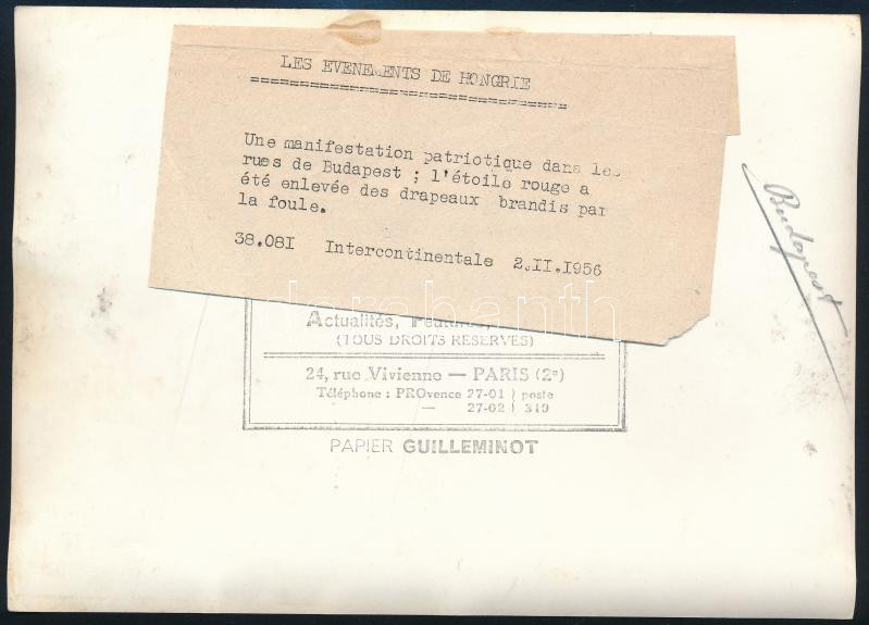 1956 Budapest, eredeti fotó az 1956-os forradalom és szabadságharc ese... https://www.darabanth.com/en/444-Online-auction/444.0/Photography/Photo~500025/1956-Budapest-eredeti-foto-az-1956-os-forradalom-es-szabadsagharc-esemenyeirol-Francia-sajto~II2913392