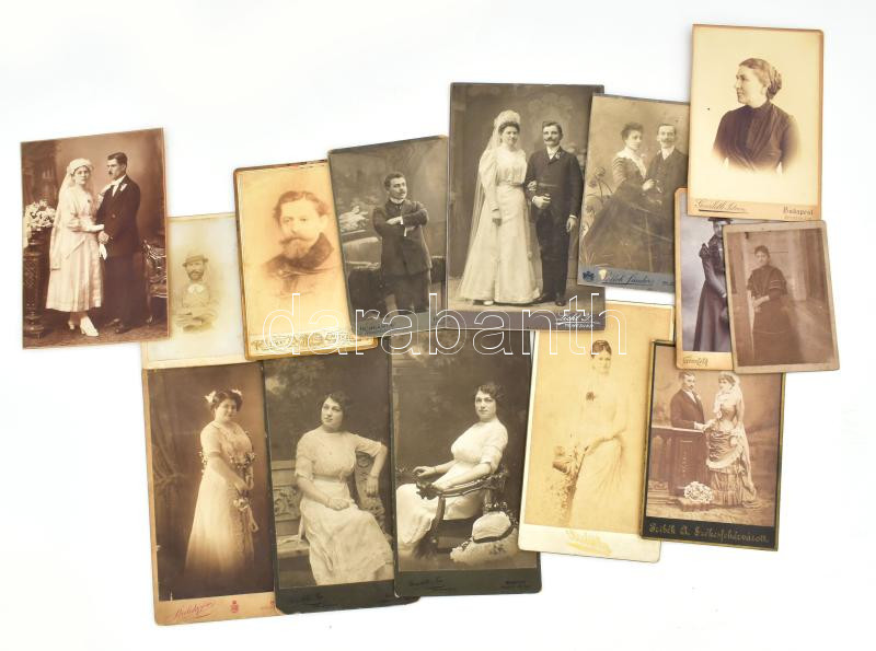 Vegyes keményhátú fotó tétel, női és férfi portrék, 14 db, vegyes állapotban, 21x13 cm és 13x7,5 cm között