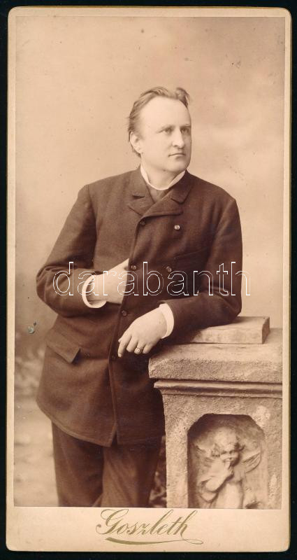 Description: cca 1890 Nagy Imre (1849-1893) színművész, rendező, a Színiakadémia tanára, Kossuth Lajos keresztfiának portréfotója, keményhátú fotó Goszleth István budapesti műterméből, 20x11 cm