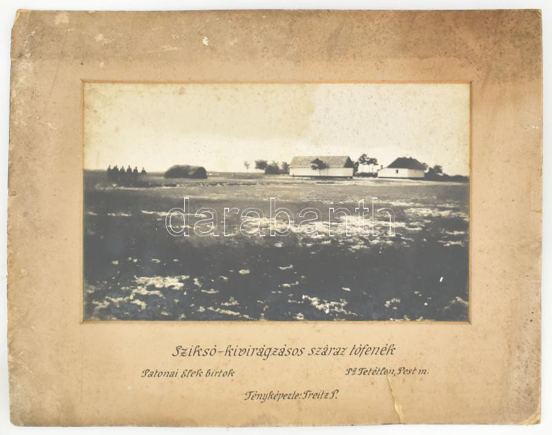 cca 1920-1930 Sziksó-kivirágzásos száraz tófenék, P(uszt)atetétlen, Pest megye, Fényképezte: Treitz P., fotó kartonon, paszpartuban, feliratozva, foltos, sérült kartonnal, 18x29 cm