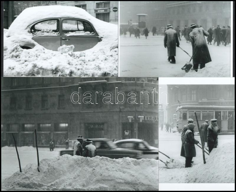 cca 1978 Budapest télen, Magyar Alfréd budapesti fotóművész felvételei, 4 db modern nagyítás eredeti negatívokról, jelzés nélkül, 15x21 cm és 10x15 cm