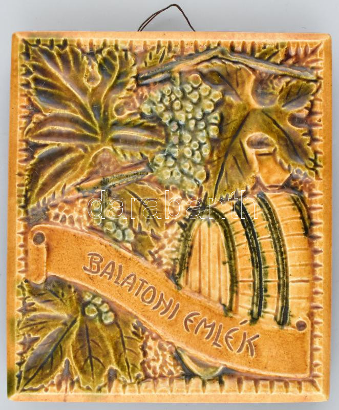 Balatoni emlék kályhacsempe, kis kopással, 24,5x21 cm