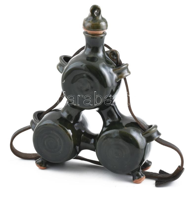 Hármas kerámia hordó. Jelzés nélküli mázas kerámia hibátlan 26 cm