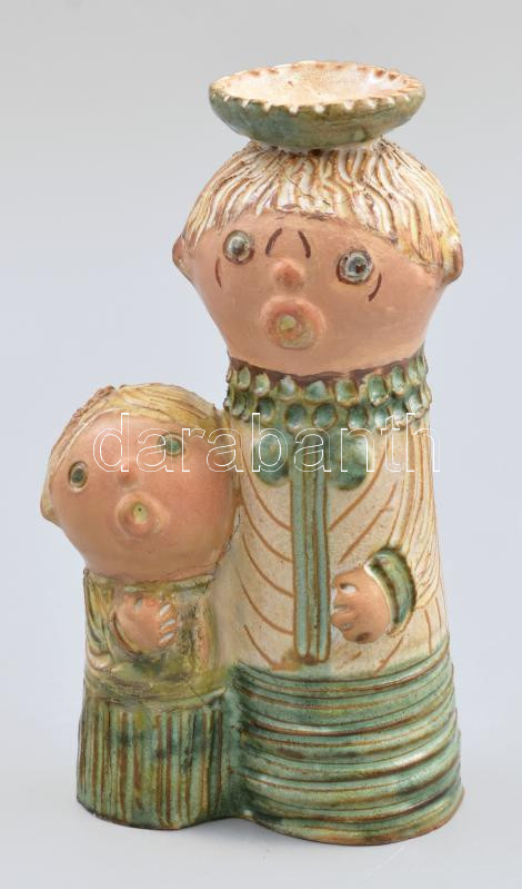 Kiss Roóz Ilona (1920-2010): Anya. lányával. Mázas kerámia, jelzett, h...