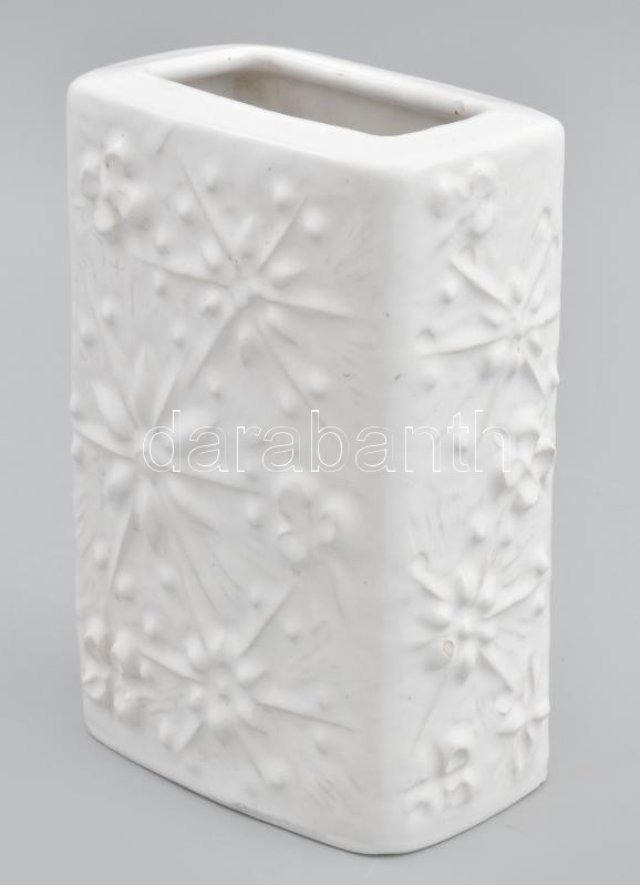 Retro német fehérmázas négyoldalas váza, domború mintával, jelzéssel, ...