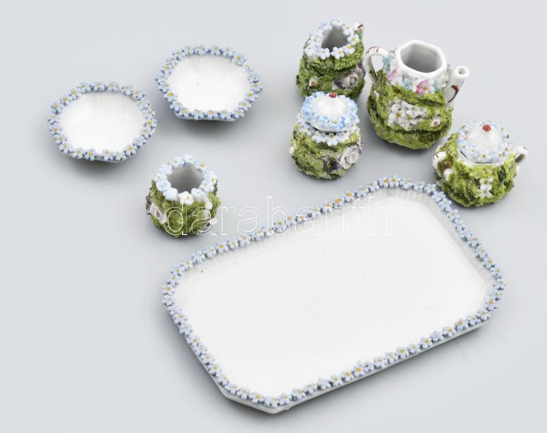Díszes antik gyermekjáték porcelán teázó szett, jelzés nélkül, minimál...