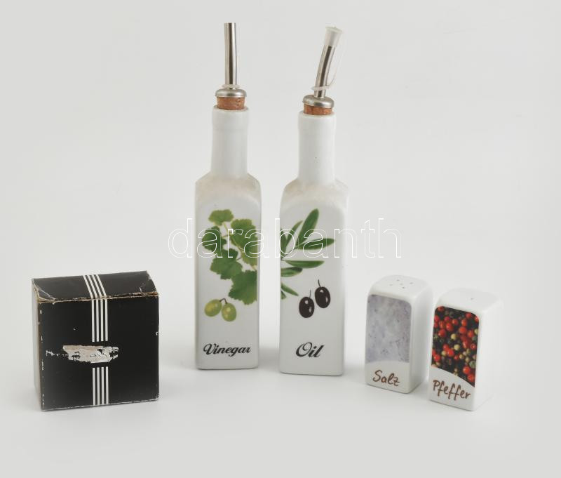Porcelán konyhai só és borstartó, valamint ecetes és olajos készlet 9 cm, 26 cm