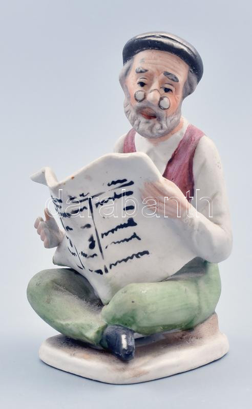Újságolvasó biszkvit porcleán, jelzett, kézzel festett, kopással 12 cm