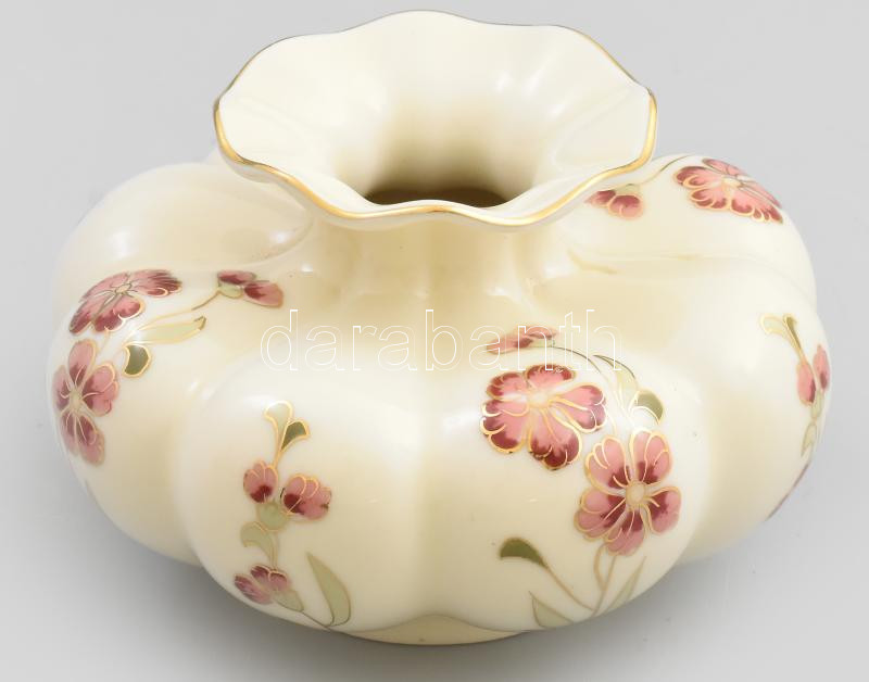 Zsolnay porcelán virág mintás váza. Kézzel festett, jelzett, hibátlan ...