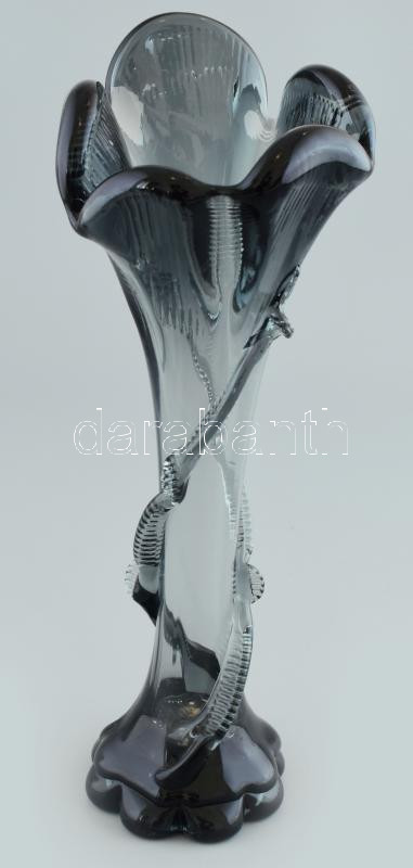 Füstüveg váza, fújt, hibátlan, m: 33 cm