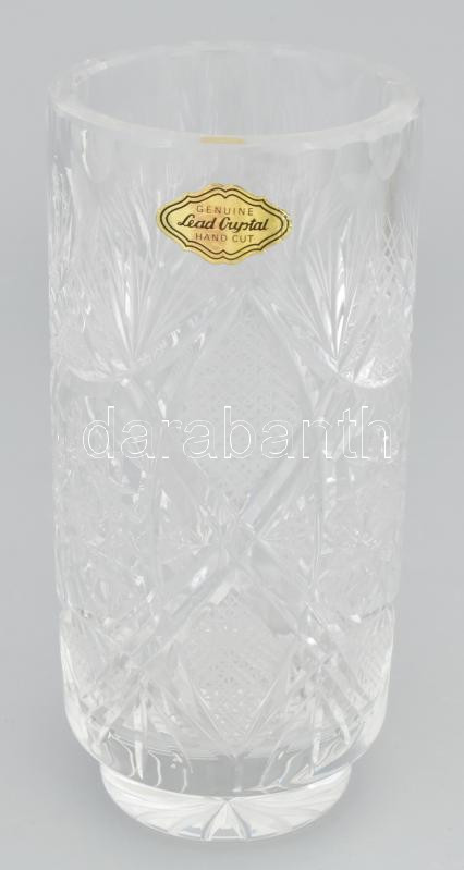 Ólomkristály váza, gazdagon csiszolt mintával, címkével jelezve, hibátlan, m: 19,5 cm