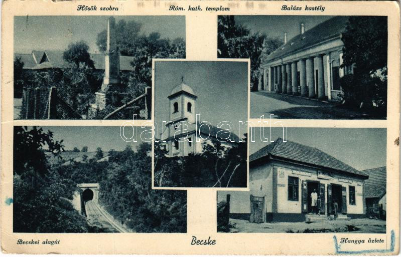 1944 Becske, Római katolikus templom, Hősök szobra, Balázs kastély, ut...