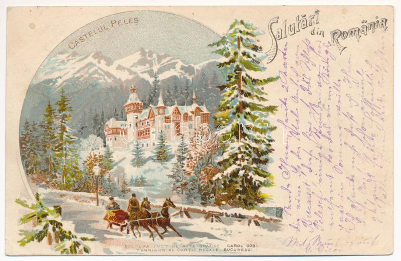 1899 (Vorläufer) Sinaia, Castelul Peles / castle, horse-drawn sled. Editura Inst. de Arte Grafice Carol Göbl Art Nouveau, litho (Rb)