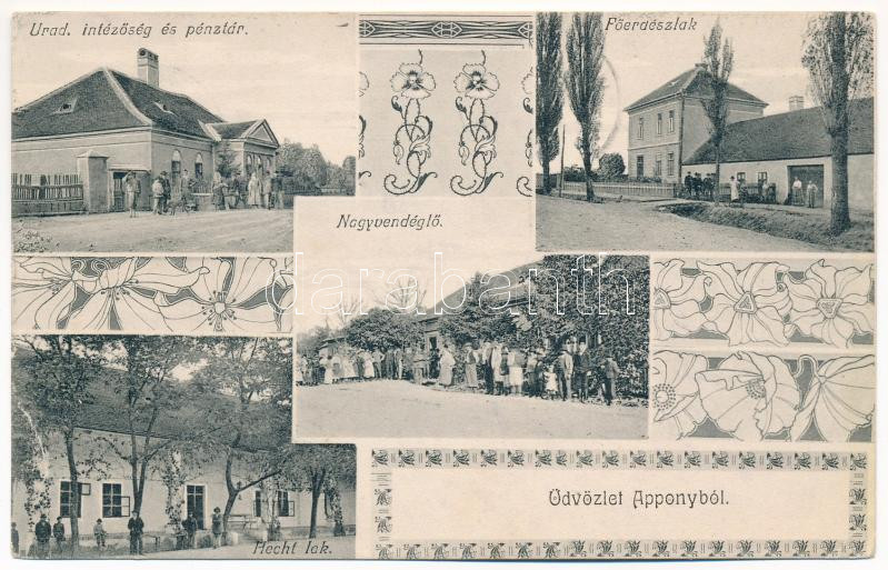 ~1909 Nagyappony, Appony, Oponice; Uradalmi intézőség és pénztár, nagyvendéglő, főerdészlak, Hecht lak / restaurant, forestry office, villa, castle. Art Nouveau (EK)