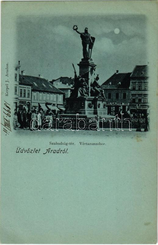 1899 (Vorläufer) Arad, Szabadság tér, Vértanú szobor, Schwarz Testvérek, Ries J. és Tása üzlete. Kerpel I. kiadása / square, shops, monument (fl)