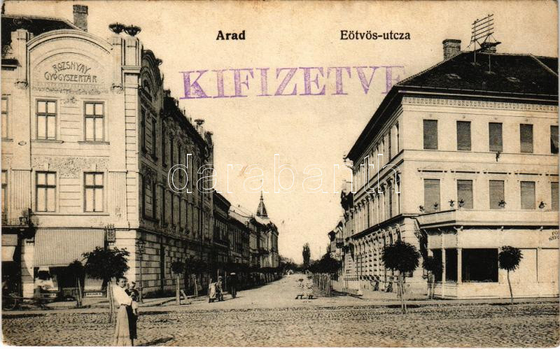 https://www.darabanth.com/en/444-Online-auction/444.0/Postcards/Transylvania~2000006/1907-Arad-Eotvos-utca-Rozsnyay-gyogyszertar-street-view-pharmacy-fl~II2931605