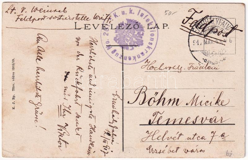 1917 Érmihályfalva, Valea lui Mihai; utca, Mátrai Ákos Gyógyszertára a Sashoz / street, pharmacy (EK) + "K.u.k. Infektionskrankenzug No. 201."