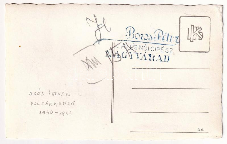 Description: 1940 Nagyvárad, Oradea; bevonulás, Soós István polgármestere beszédet mond magyar címeres pódiumon. Boros Péter úri és női cipész / entry of the Hungarian troops, speech of the mayor. photo