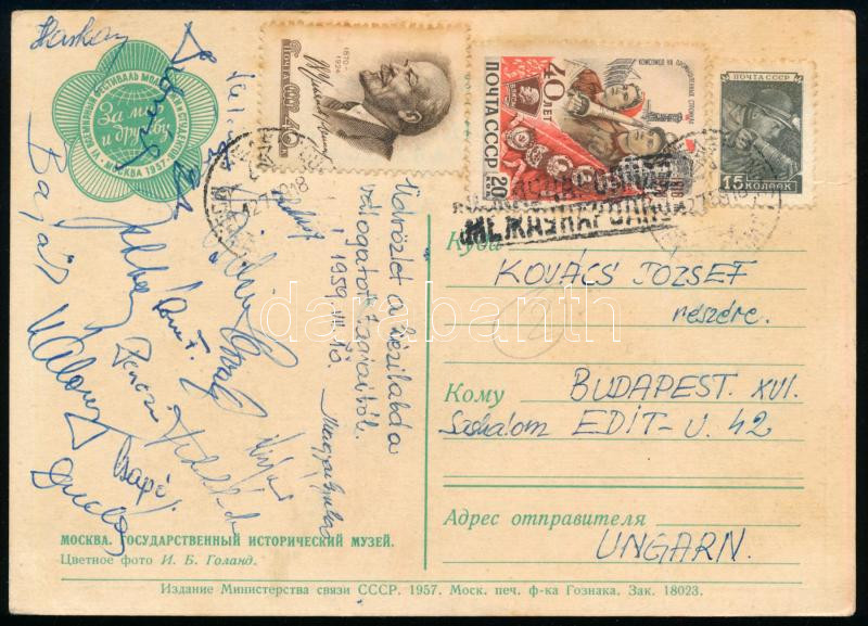 1959 A kézilabda válogatott tagjainak aláírása képeslapon