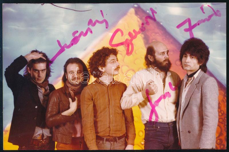A Piramis együttes tagjainak aláírása az őket ábrázoló képen