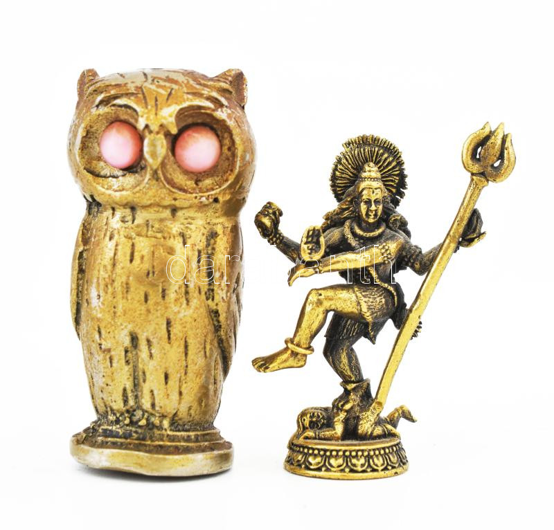 Bagoly és keleti isten figura, réz és rezezett fém, m: 4-5 cm