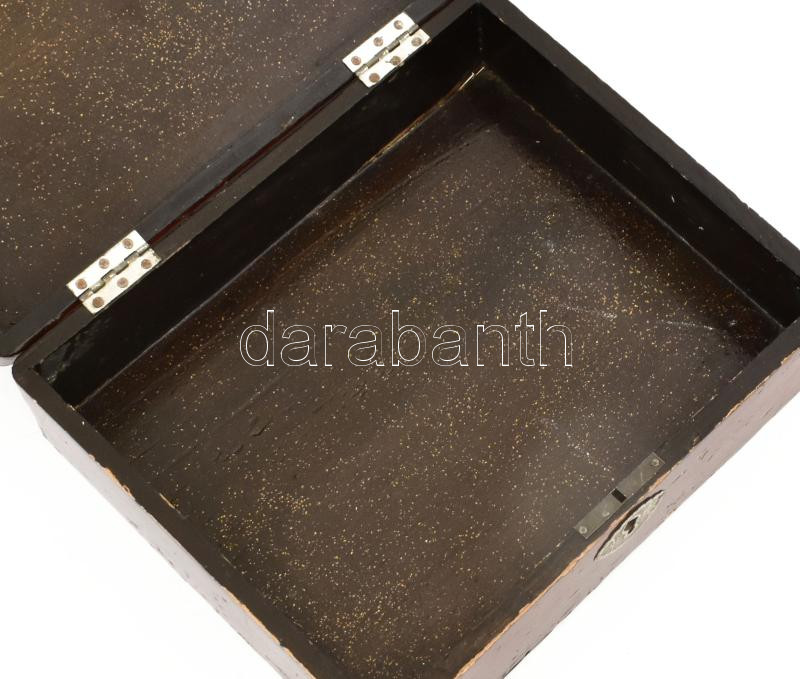 Japán fadoboz, pecséttel jelzett, festett, kopott, kulcs nélkül, 17,5x...