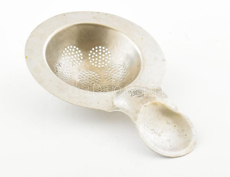Régi alpakka teaszűrő, jelzett, 14,5x9,5 cm